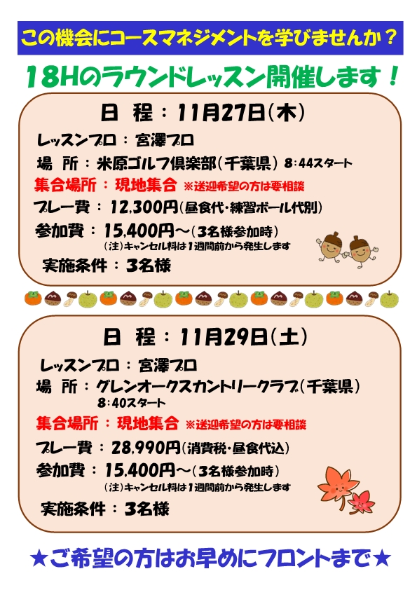 11月は2回ほど、18Hでのラウンドレッスン⛳を開催いたします!