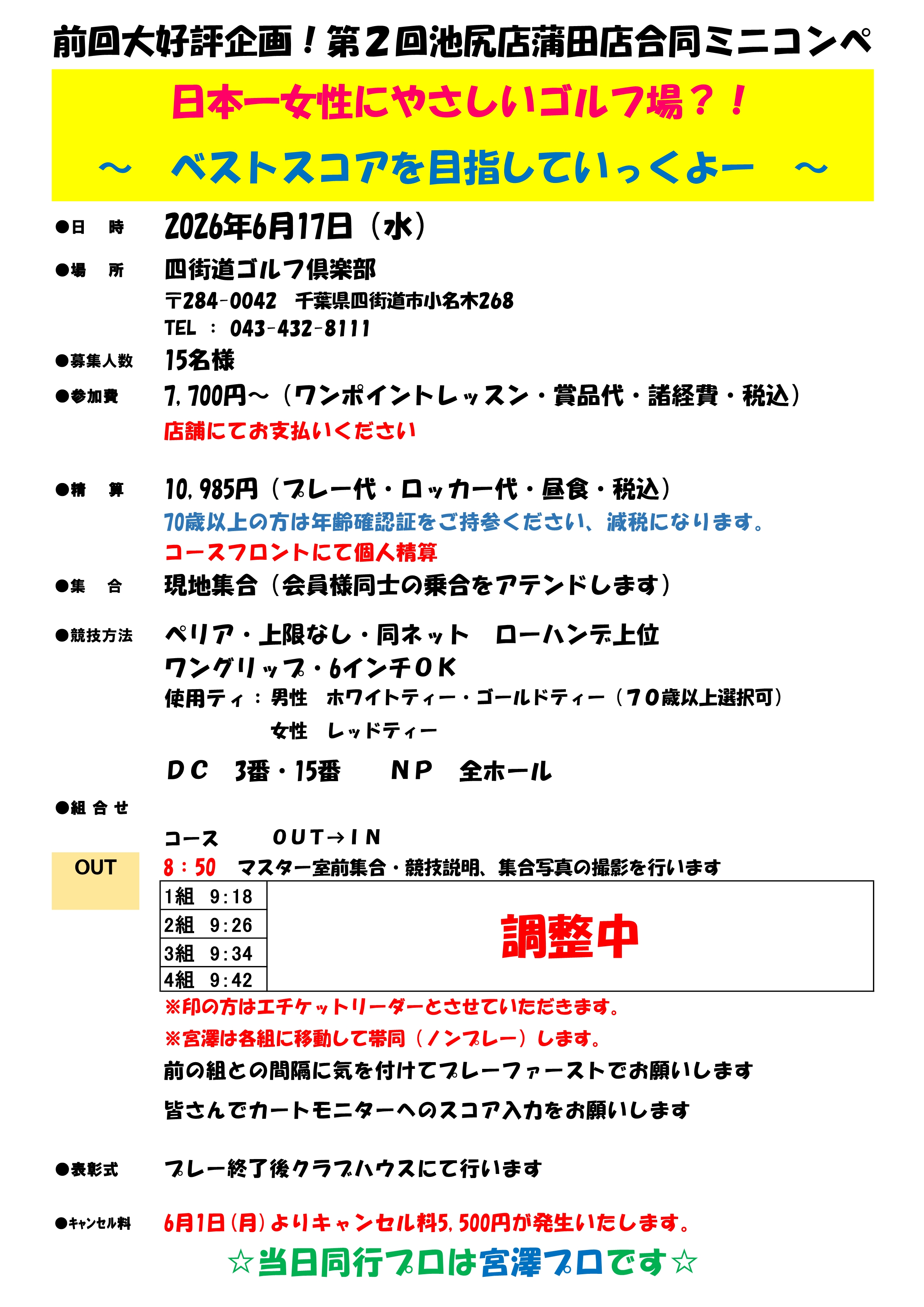 第2回 合同ミニコンペ⛳参加者募集!! 2026/04/21 いつもご利用いただきましてありがとうございます。 この度、前回ご好評に終わりました【池尻店・蒲田店合同ミニコンペ⛳】の開催が決定いたしました!梅雨の時期ではございますが、雨なんか吹き飛ばしてラウンドしよう! ベストスコア目指せるコースです、張りきって参りましょう!! 日 程:6月17日(水) 場 所:四街道ゴルフ倶楽部(千葉県) ★ご希望の方は、お早めにフロントまで★ 共有:Facebook で共有 (新しいウィンドウで開きます)クリックして Twitter で共有 (新しいウィンドウで開きます)クリックして Google+ で共有 (新しいウィンドウで開きます)