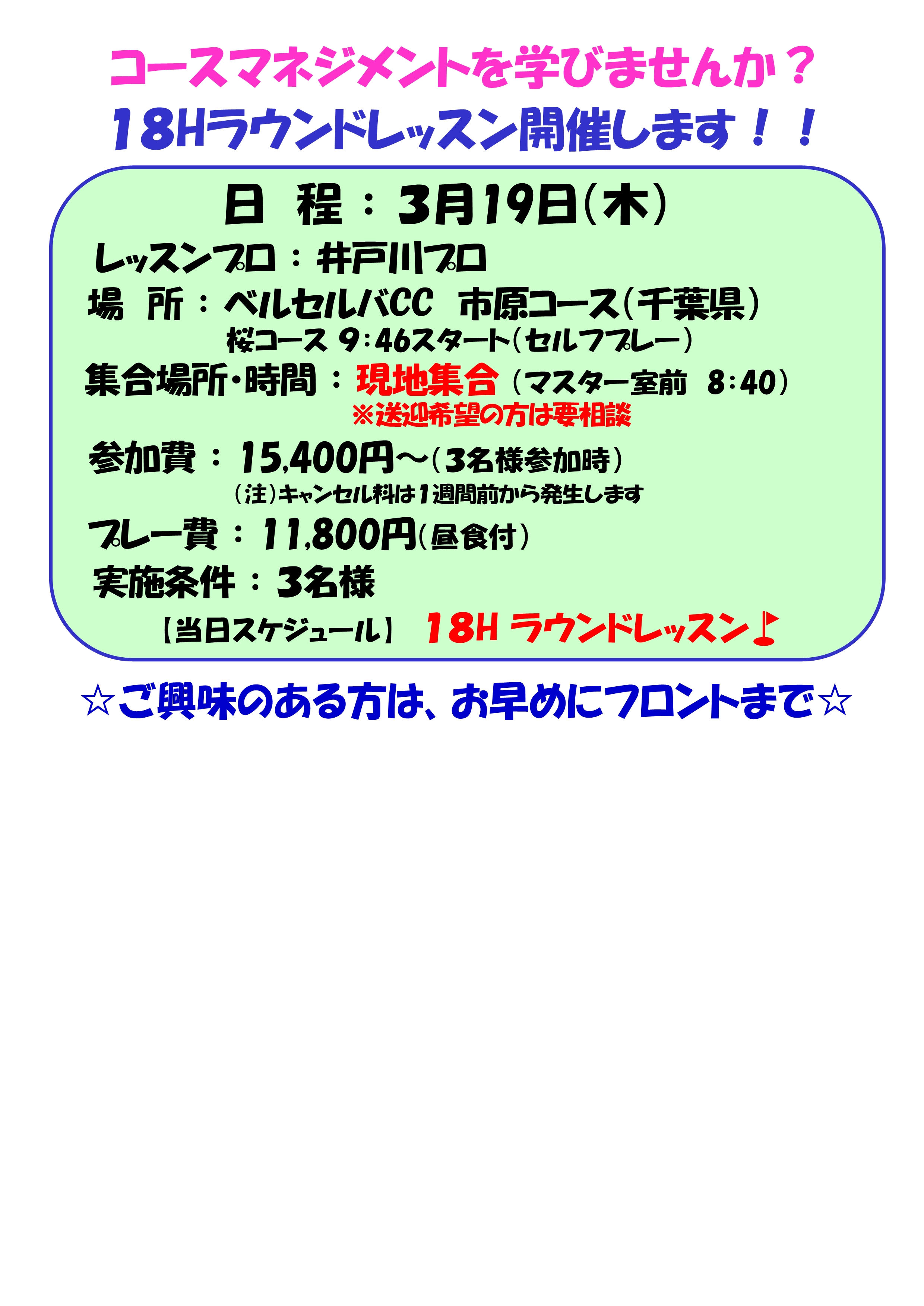 18Hラウンドレッスン⛳追加決定いたしました!!